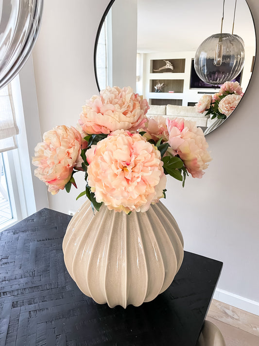 In ons assortiment vind je een breed scala aan kunstboeketten, van een stijlvol zijden veldboeket tot een luxe groot zijden boeket. Kies voor een speelse mix van zijden rozen, pioenrozen, tulpen, hortensia’s en meer. Combineer jouw favoriete levensechte zijden boeket met een elegante vaas voor een complete look.